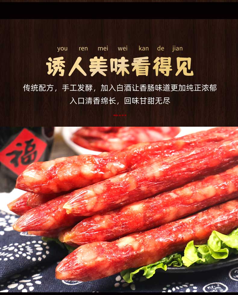 荣业广式腊肠真系五分瘦肠广东猪肉肠广东特产广味腊肠传统广式腊味
