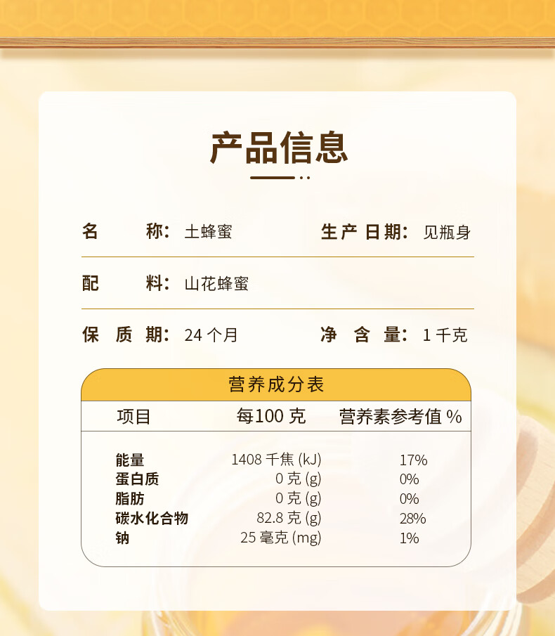 蜂蜜 天然深山纯正百花 土蜂蜜 玻璃瓶装